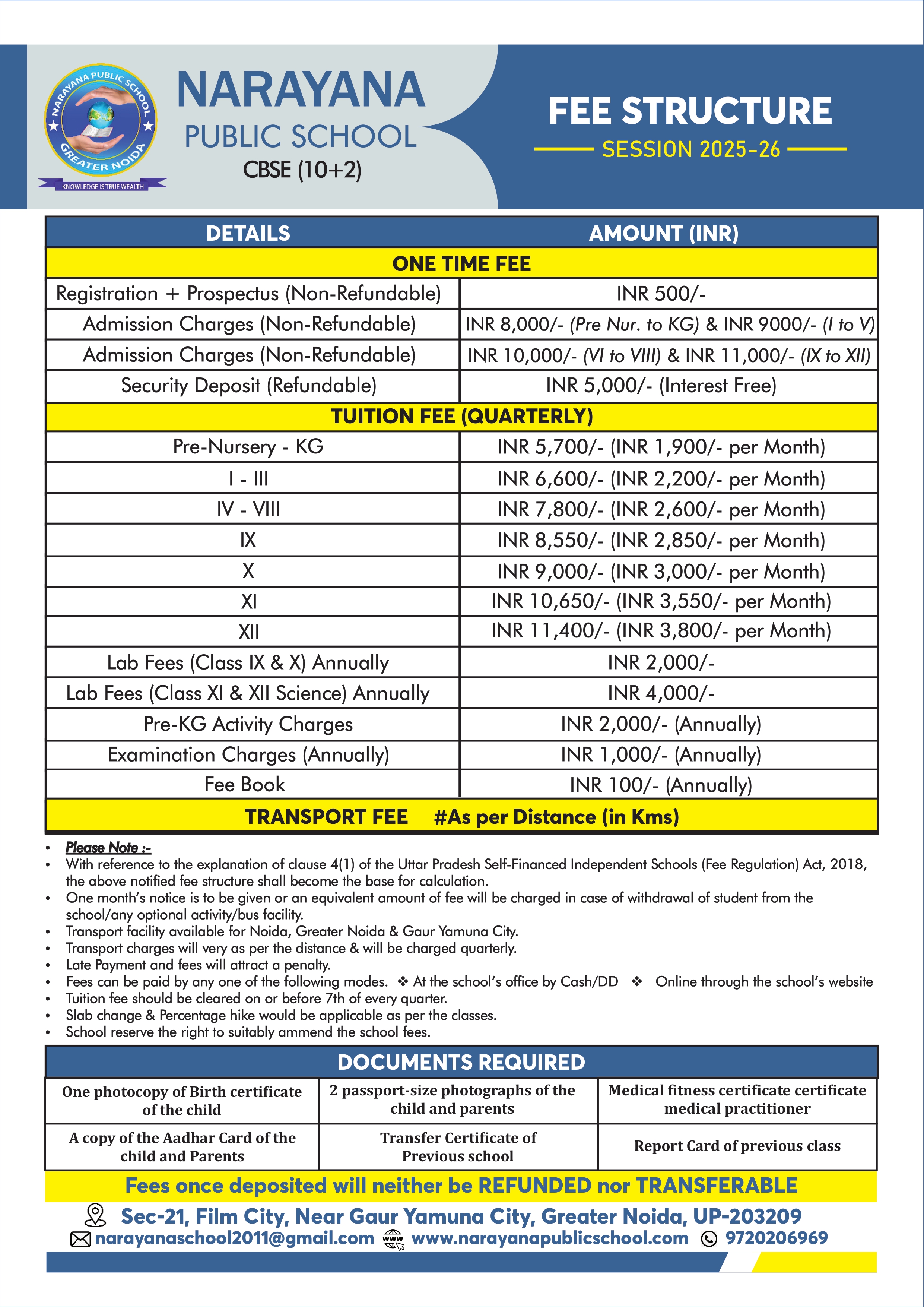 Narayana Public School, Rustampur, Sector - 20 Gautam Buddh Nagar, Greater Noida, Uttar Pardesh- 203209 (India)